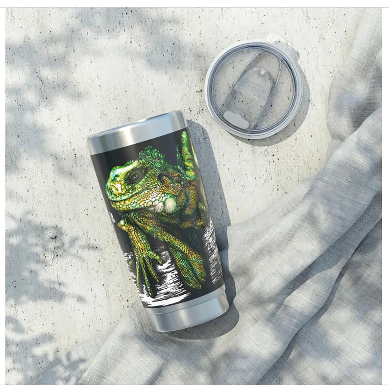 Iguana Art 20oz Tumbler, Original Hand Drawn Travel Mug, Gift Idea, Reptile Lover, Nature Gift, Animal Art, Stainless Steel Cup